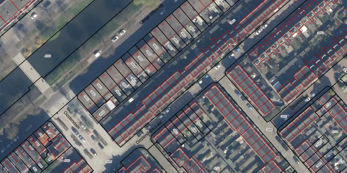 Het perceel waarop Oostendamstraat 91 staat heeft een oppervlakte van 3025 m². Dit is een zeer groot perceel. De perceeloppervlakte wordt geregistreerd door het Kadaster. Gedetailleerde informatie over de maten van dit perceel kunt u vinden in het rapport Kadastrale kaart met maatvoering van Oostendamstraat 91.