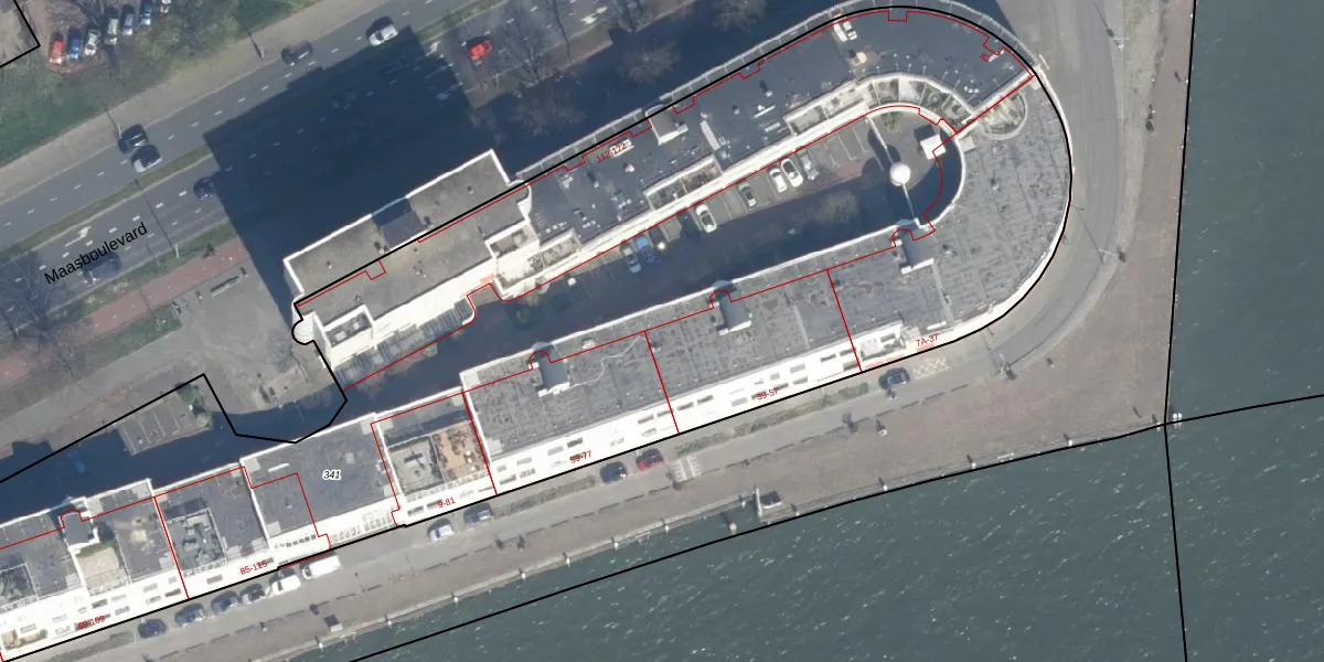 Oosterkade 57 is gelegen op kadastraal perceel RTD04AH341. Deze kadastrale aanduiding is uniek en wordt gebruikt door het Kadaster om eigendomsrechten en andere zakelijke rechten vast te leggen. Het perceel maakt onderdeel uit van de kadastrale gemeente Rotterdam.