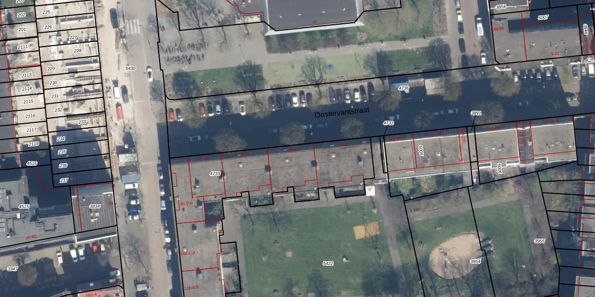 Oostervantstraat 46 is gelegen op kadastraal perceel RTD06S4733. Deze kadastrale aanduiding is uniek en wordt gebruikt door het Kadaster om eigendomsrechten en andere zakelijke rechten vast te leggen. Het perceel maakt onderdeel uit van de kadastrale gemeente Rotterdam.