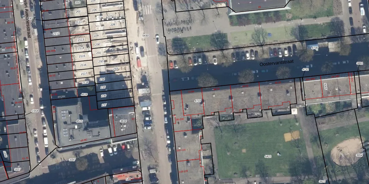 Oostervantstraat 84 is gelegen op kadastraal perceel RTD06S4733. Deze kadastrale aanduiding is uniek en wordt gebruikt door het Kadaster om eigendomsrechten en andere zakelijke rechten vast te leggen. Het perceel maakt onderdeel uit van de kadastrale gemeente Rotterdam.
