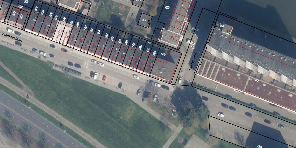 Oostmaaslaan 107-B-01 is gelegen op kadastraal perceel KLG00I235. Deze kadastrale aanduiding is uniek en wordt gebruikt door het Kadaster om eigendomsrechten en andere zakelijke rechten vast te leggen. Het perceel maakt onderdeel uit van de kadastrale gemeente Kralingen.