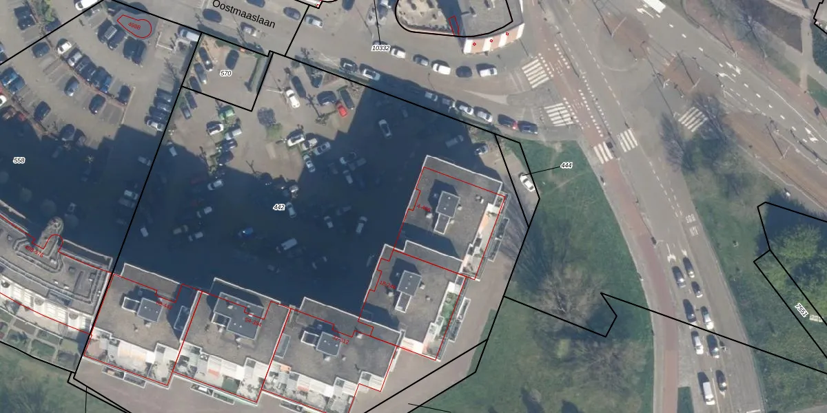 Oostmaaslaan 182 is gelegen op kadastraal perceel KLG00I442. Deze kadastrale aanduiding is uniek en wordt gebruikt door het Kadaster om eigendomsrechten en andere zakelijke rechten vast te leggen. Het perceel maakt onderdeel uit van de kadastrale gemeente Kralingen.