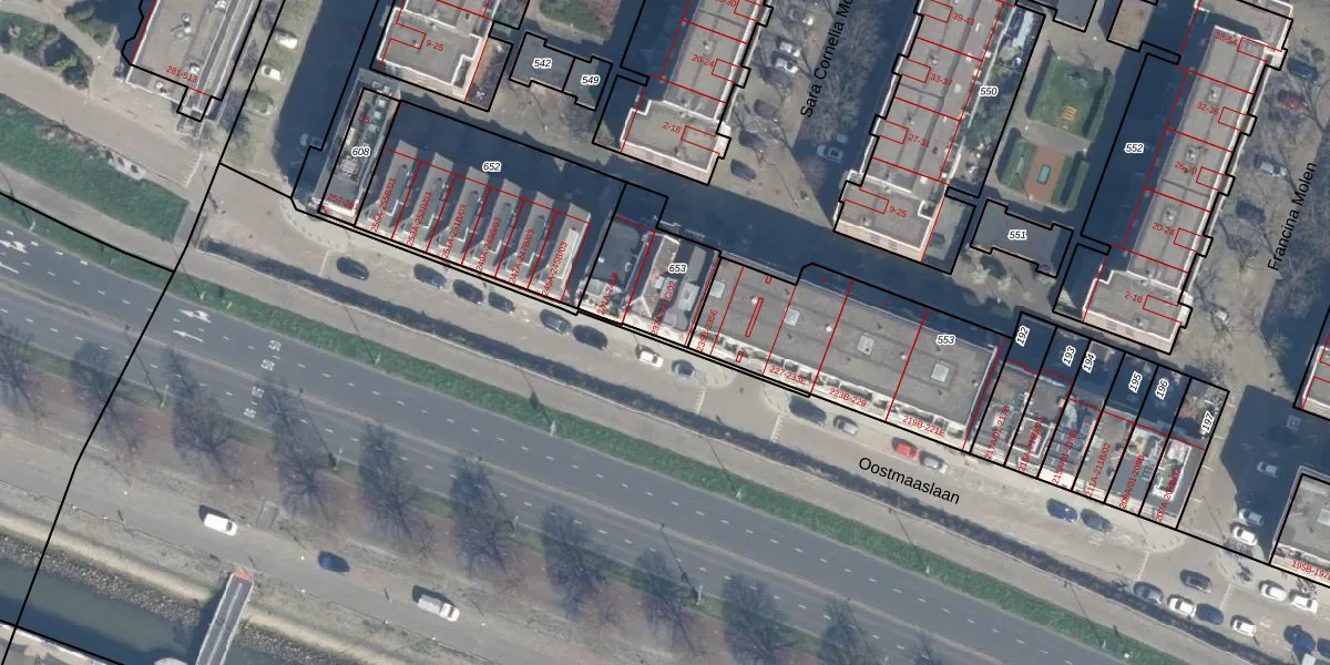 Oostmaaslaan 237-C-01 is gelegen op kadastraal perceel KLG00I653. Deze kadastrale aanduiding is uniek en wordt gebruikt door het Kadaster om eigendomsrechten en andere zakelijke rechten vast te leggen. Het perceel maakt onderdeel uit van de kadastrale gemeente Kralingen.