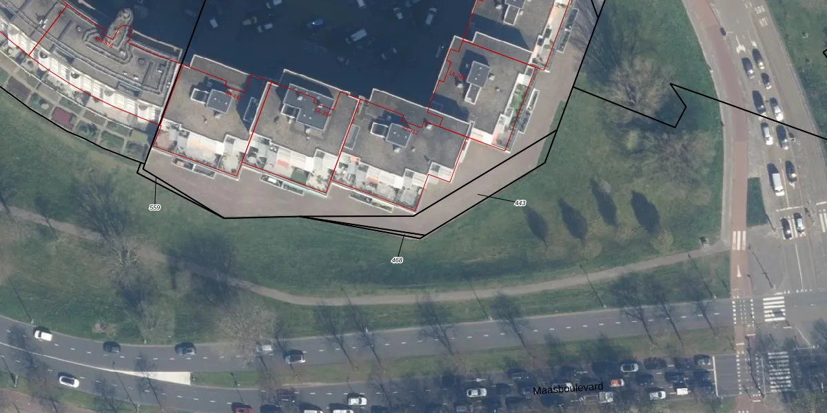 Het perceel waarop Oostmaaslaan 40 staat heeft een oppervlakte van 7001 m². Dit is een zeer groot perceel. De perceeloppervlakte wordt geregistreerd door het Kadaster. Gedetailleerde informatie over de maten van dit perceel kunt u vinden in het rapport Kadastrale kaart met maatvoering van Oostmaaslaan 40.