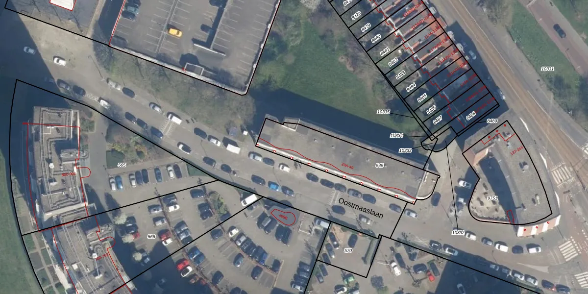 Oostmaaslaan 43 is gelegen op kadastraal perceel KLG00I545. Deze kadastrale aanduiding is uniek en wordt gebruikt door het Kadaster om eigendomsrechten en andere zakelijke rechten vast te leggen. Het perceel maakt onderdeel uit van de kadastrale gemeente Kralingen.