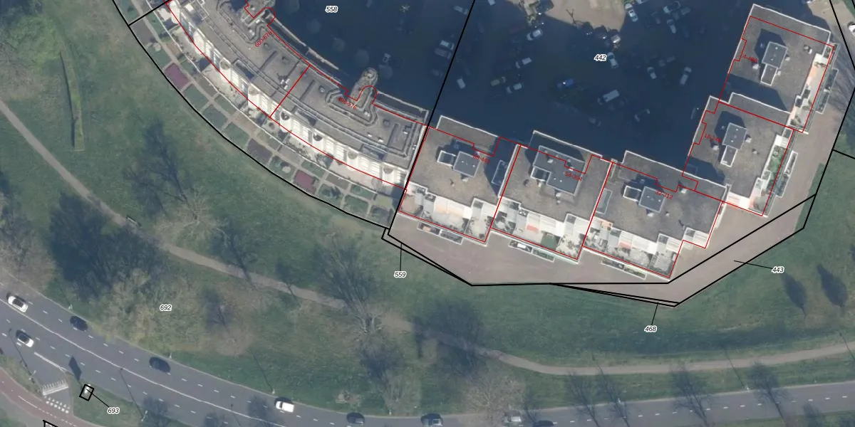 Het adres ligt op het perceel KLG00-I-442, dat zich in de kadastrale gemeente Kralingen bevindt. Het perceel is met 7001 m² relatief groot. Het gemiddelde ligt in de kadastrale gemeente Kralingen op 1359,65 m². Het grootste perceel in de kadastrale gemeente is 1,32 km². Het kleinste perceel heeft een oppervlakte van 0 m². Op het perceel zijn 182 adressen aanwezig. In de Basisregistratie Kadaster (BRK) werden de grenzen van het perceel geregistreerd op 22-01-2008.