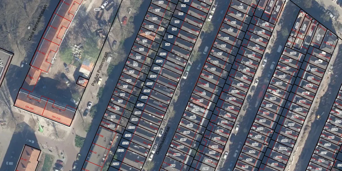 Het perceel waarop Oostmaasstraat 33-B staat heeft een oppervlakte van 91 m². Dit is een klein perceel. De perceeloppervlakte wordt geregistreerd door het Kadaster. Gedetailleerde informatie over de maten van dit perceel kunt u vinden in het rapport Kadastrale kaart met maatvoering van Oostmaasstraat 33-B.