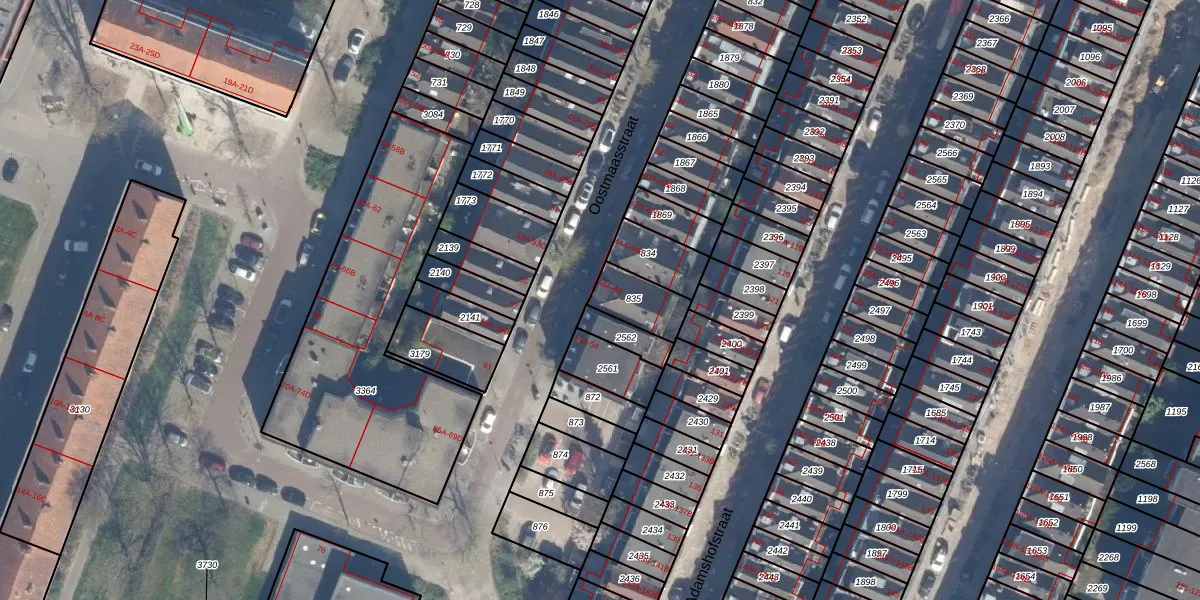 Het perceel waarop Oostmaasstraat 48 staat heeft een oppervlakte van 126 m². Dit is een middelgroot perceel. De perceeloppervlakte wordt geregistreerd door het Kadaster. Gedetailleerde informatie over de maten van dit perceel kunt u vinden in het rapport Kadastrale kaart met maatvoering van Oostmaasstraat 48.