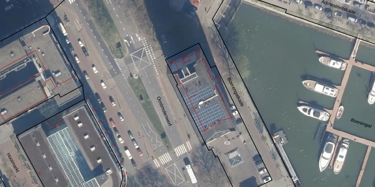 Het perceel waarop Oostmolenwerf 22 staat heeft een oppervlakte van 1820 m². Dit is een zeer groot perceel. De perceeloppervlakte wordt geregistreerd door het Kadaster. Gedetailleerde informatie over de maten van dit perceel kunt u vinden in het rapport Kadastrale kaart met maatvoering van Oostmolenwerf 22.