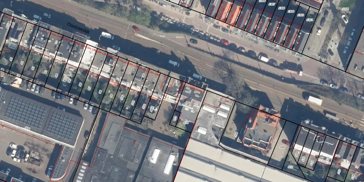 Oostzeedijk 106 is gelegen op kadastraal perceel KLG00I672. Deze kadastrale aanduiding is uniek en wordt gebruikt door het Kadaster om eigendomsrechten en andere zakelijke rechten vast te leggen. Het perceel maakt onderdeel uit van de kadastrale gemeente Kralingen.