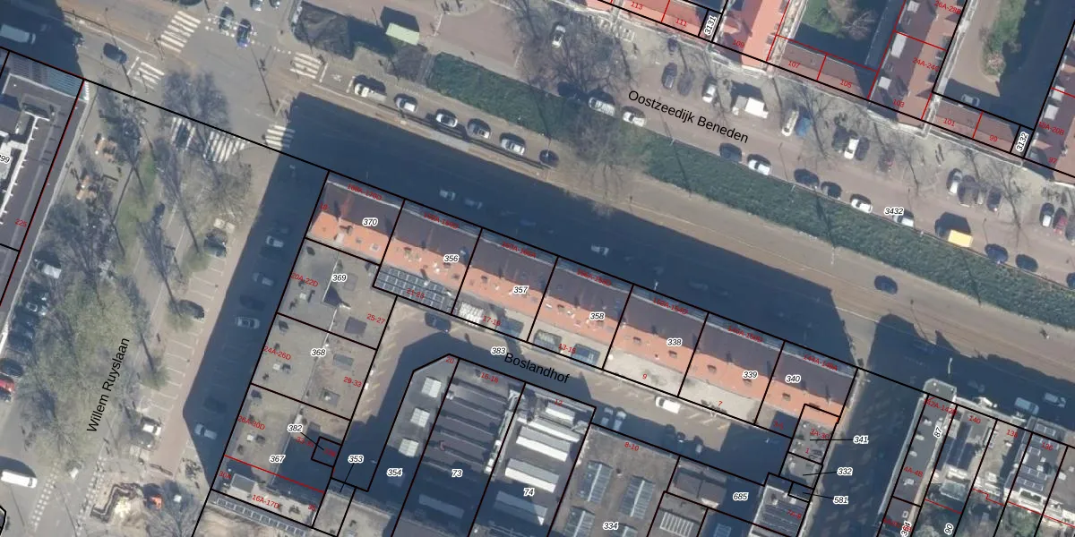 Het adres ligt op het perceel KLG00-I-357, dat zich in de kadastrale gemeente Kralingen bevindt. Het perceel is kleiner dan gemiddeld in Kralingen. Het perceel is 260 m² groot, terwijl het gemiddelde ligt op 1363,67 m². De grootste perceeloppervlakte in de kadastrale gemeente is 1,32 km². De kleinste oppervlakte bedraagt 0 m². Er zijn 14 adressen aanwezig op het perceel. De laatste wijziging in het de Basisregistratie Kadaster (BRK) was op 03-07-2002.