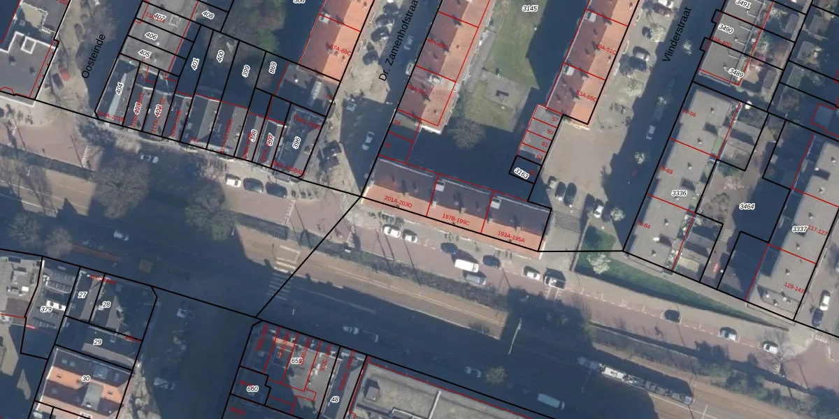 Oostzeedijk Beneden 201-B is gelegen op kadastraal perceel KLG00F3145. Deze kadastrale aanduiding is uniek en wordt gebruikt door het Kadaster om eigendomsrechten en andere zakelijke rechten vast te leggen. Het perceel maakt onderdeel uit van de kadastrale gemeente Kralingen.