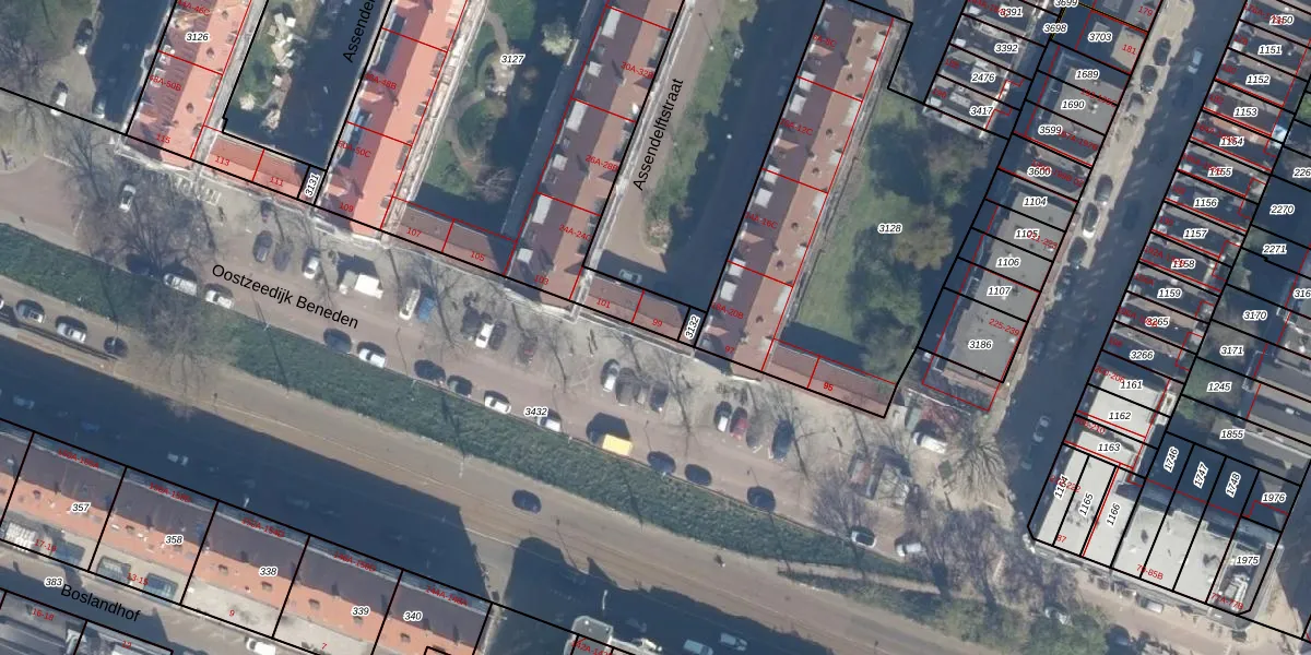 Het perceel waarop Oostzeedijk Beneden 99 staat heeft een oppervlakte van 2505 m². Dit is een zeer groot perceel. De perceeloppervlakte wordt geregistreerd door het Kadaster. Gedetailleerde informatie over de maten van dit perceel kunt u vinden in het rapport Kadastrale kaart met maatvoering van Oostzeedijk Beneden 99.