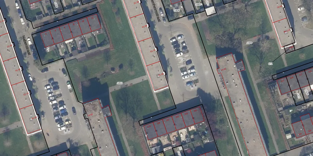 Het perceel waarop Oppenheimstraat 97 staat heeft een oppervlakte van 9583 m². Dit is een zeer groot perceel. De perceeloppervlakte wordt geregistreerd door het Kadaster. Gedetailleerde informatie over de maten van dit perceel kunt u vinden in het rapport Kadastrale kaart met maatvoering van Oppenheimstraat 97.