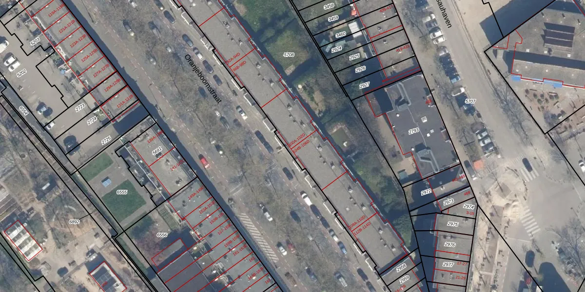 Oranjeboomstraat 102-B is gelegen op kadastraal perceel RTD05Q5708. Deze kadastrale aanduiding is uniek en wordt gebruikt door het Kadaster om eigendomsrechten en andere zakelijke rechten vast te leggen. Het perceel maakt onderdeel uit van de kadastrale gemeente Rotterdam.