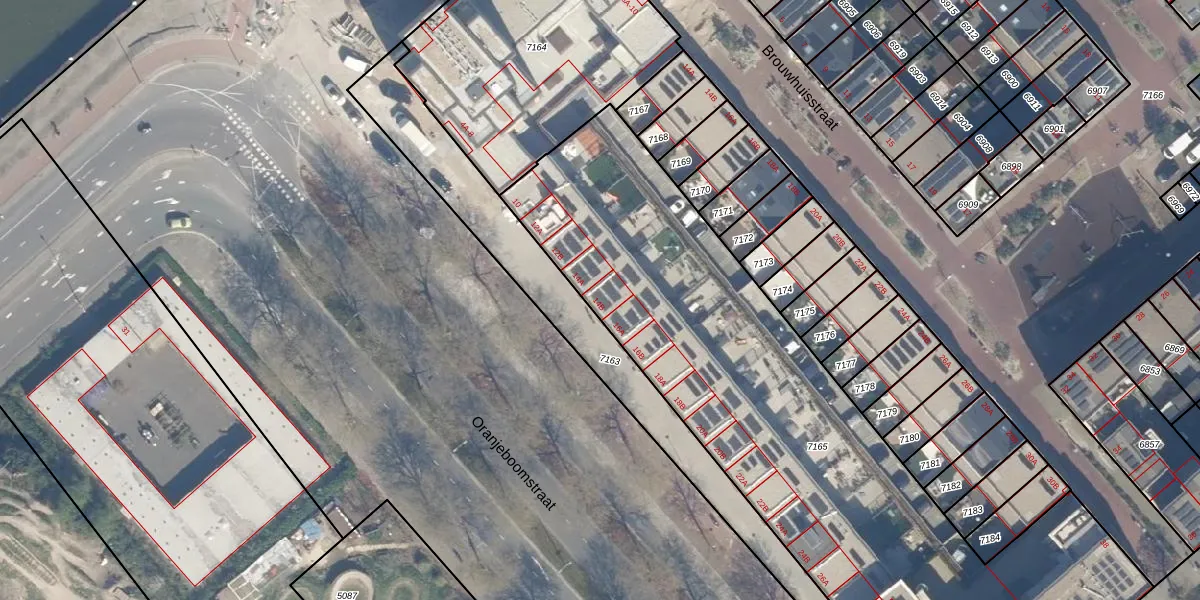 Het perceel waarop het adres ligt is RTD05-Q-7165. De afkorting 'RTD05' staat voor kadastrale gemeente Rotterdam. De oppervlakte van het perceel is 3292 m². Dat is groter dan gemiddeld in Rotterdam, waar de gemiddelde perceeloppervlakte op 1401,79 m² ligt. De grootste perceeloppervlakte in de kadastrale gemeente is 36,8 ha. De kleinste oppervlakte bedraagt 0 m². Op het perceel liggen in totaal 54 adressen. In de Basisregistratie Kadaster (BRK) werden de grenzen van het perceel geregistreerd op 21-05-2025.