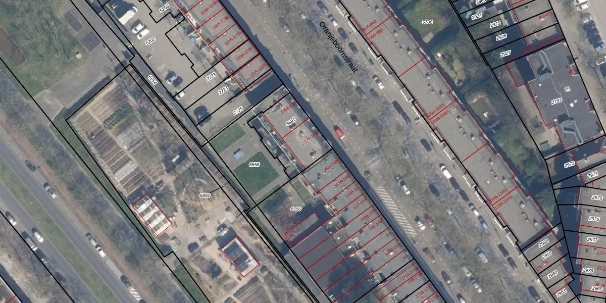 Oranjeboomstraat 145-B is gelegen op kadastraal perceel RTD05Q5691. Deze kadastrale aanduiding is uniek en wordt gebruikt door het Kadaster om eigendomsrechten en andere zakelijke rechten vast te leggen. Het perceel maakt onderdeel uit van de kadastrale gemeente Rotterdam.