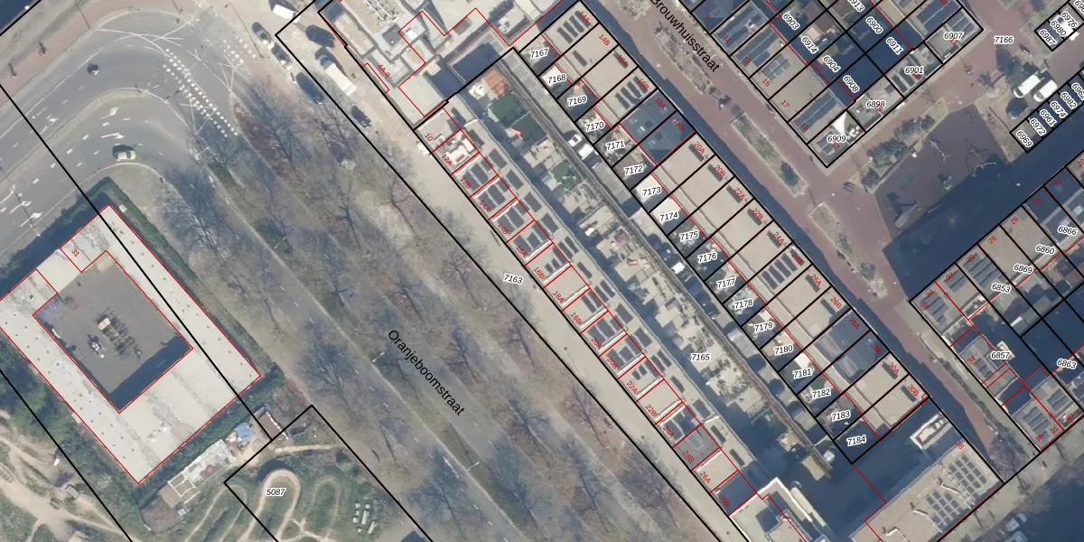 Het perceel waarop Oranjeboomstraat 16-B staat heeft een oppervlakte van 3292 m². Dit is een zeer groot perceel. De perceeloppervlakte wordt geregistreerd door het Kadaster. Gedetailleerde informatie over de maten van dit perceel kunt u vinden in het rapport Kadastrale kaart met maatvoering van Oranjeboomstraat 16-B.