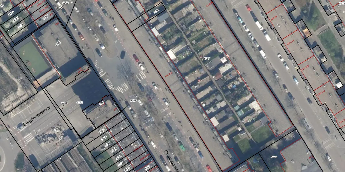 Het perceel waarop Oranjeboomstraat 176 staat heeft een oppervlakte van 5827 m². Dit is een zeer groot perceel. De perceeloppervlakte wordt geregistreerd door het Kadaster. Gedetailleerde informatie over de maten van dit perceel kunt u vinden in het rapport Kadastrale kaart met maatvoering van Oranjeboomstraat 176.