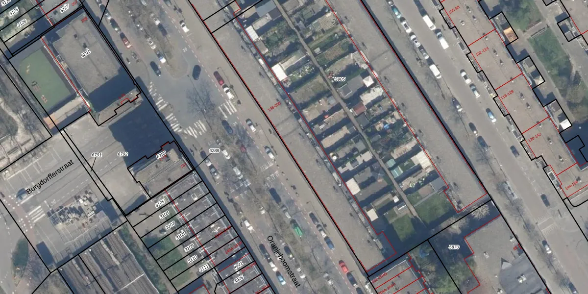 Het perceel waarop Oranjeboomstraat 178-B staat heeft een oppervlakte van 5827 m². Dit is een zeer groot perceel. De perceeloppervlakte wordt geregistreerd door het Kadaster. Gedetailleerde informatie over de maten van dit perceel kunt u vinden in het rapport Kadastrale kaart met maatvoering van Oranjeboomstraat 178-B.