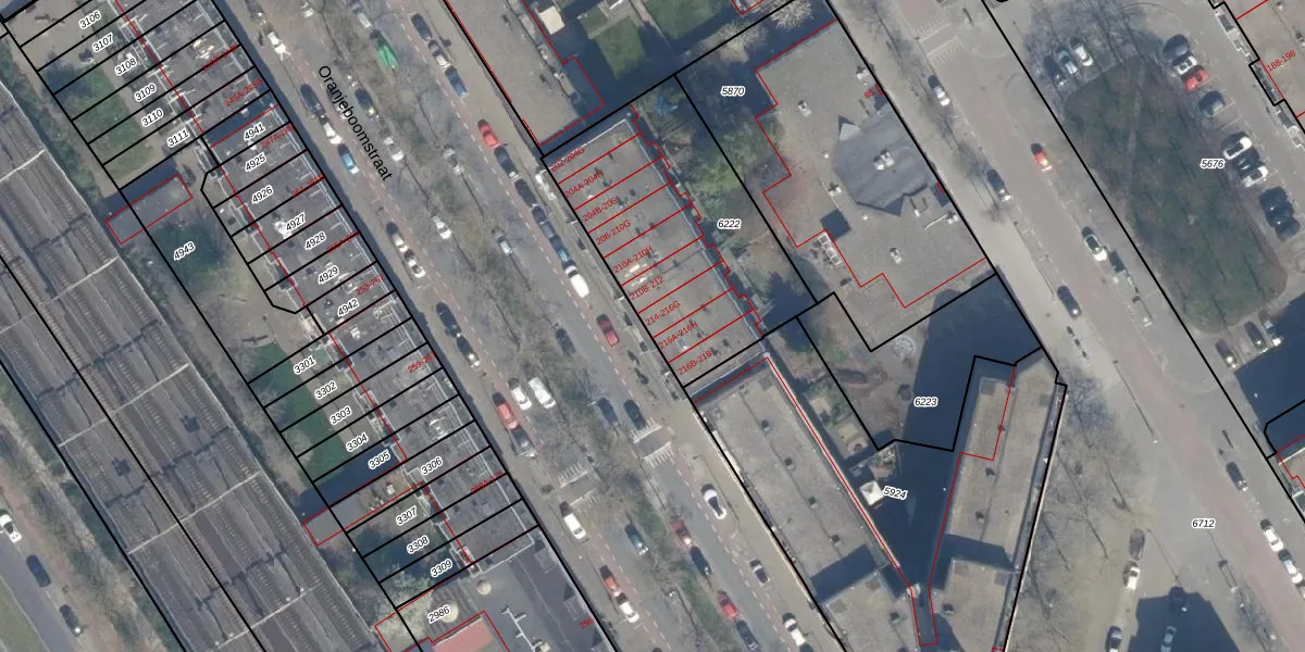 Het perceel waarop Oranjeboomstraat 214 staat heeft een oppervlakte van 998 m². Dit is een groot perceel. De perceeloppervlakte wordt geregistreerd door het Kadaster. Gedetailleerde informatie over de maten van dit perceel kunt u vinden in het rapport Kadastrale kaart met maatvoering van Oranjeboomstraat 214.