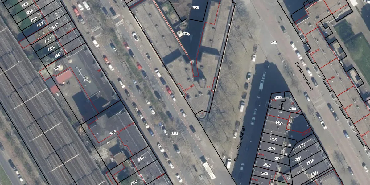 Het adres ligt op het perceel RTD05-Q-5924, dat zich in de kadastrale gemeente Rotterdam bevindt. Het perceel is met 2037 m² relatief groot. Het gemiddelde ligt in de kadastrale gemeente Rotterdam op 1401,53 m². Het kleinste perceel in de kadastrale gemeente is 0 m² groot. De grootste perceeloppervlakte is 36,8 ha. Op het perceel liggen in totaal 56 adressen. De huidige grenzen van het perceel zijn digitaal in de Basisregistratie Kadaster (BRK) geregistreerd op 01-06-2012.