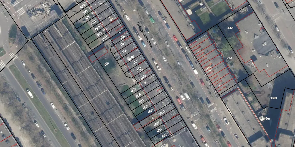 Gebruik de zoekbalk of klik op een perceel voor informatie over de adressen binnen dit perceel.