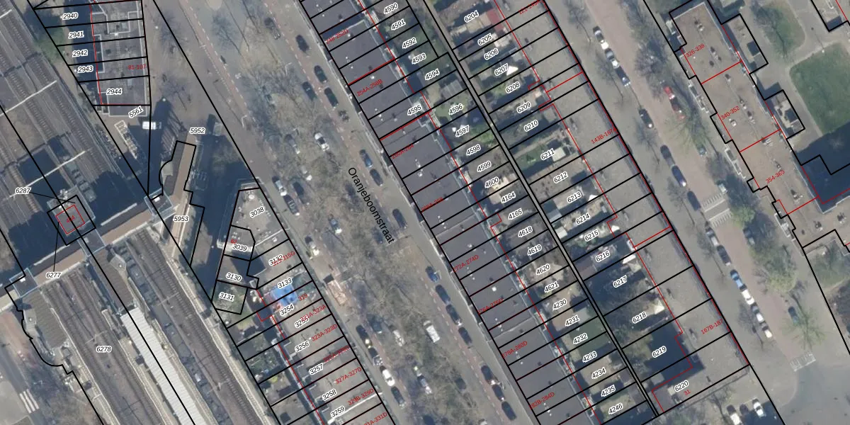 Oranjeboomstraat 266-F is gelegen op kadastraal perceel RTD05Q4600. Deze kadastrale aanduiding is uniek en wordt gebruikt door het Kadaster om eigendomsrechten en andere zakelijke rechten vast te leggen. Het perceel maakt onderdeel uit van de kadastrale gemeente Rotterdam.
