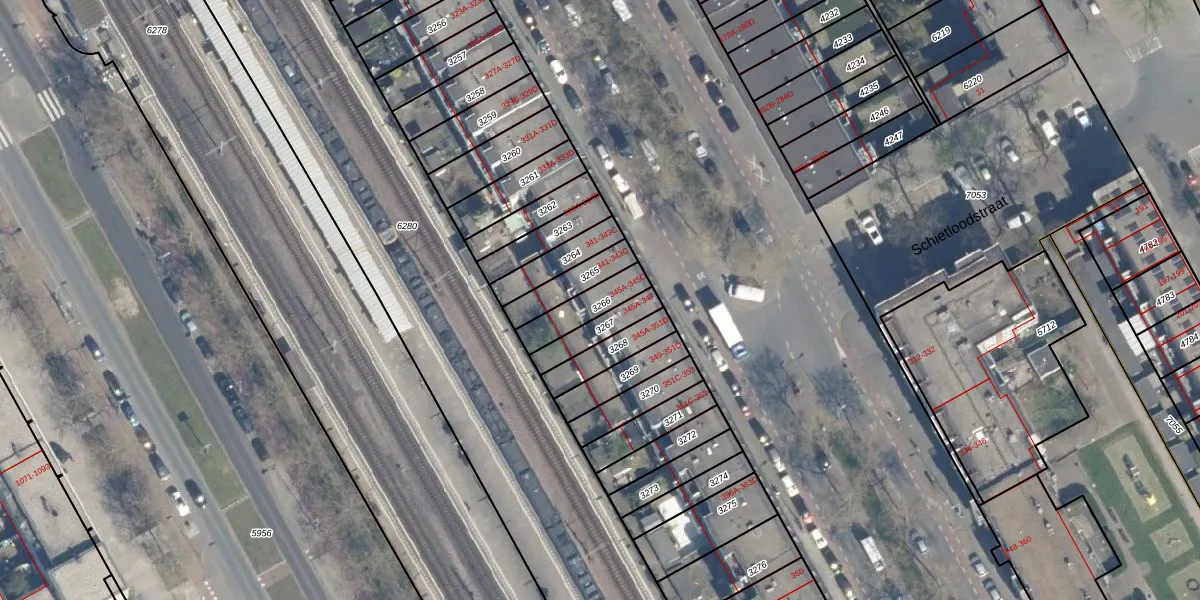 Oranjeboomstraat 345-B is gelegen op kadastraal perceel RTD05Q3266. Deze kadastrale aanduiding is uniek en wordt gebruikt door het Kadaster om eigendomsrechten en andere zakelijke rechten vast te leggen. Het perceel maakt onderdeel uit van de kadastrale gemeente Rotterdam.