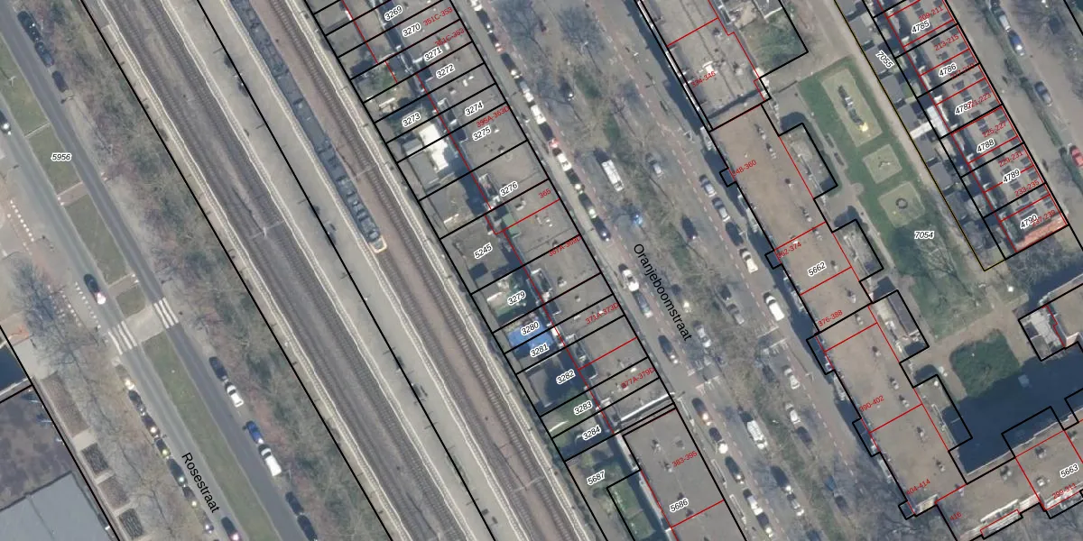 Het perceel waarop Oranjeboomstraat 369-D staat heeft een oppervlakte van 180 m². Dit is een middelgroot perceel. De perceeloppervlakte wordt geregistreerd door het Kadaster. Gedetailleerde informatie over de maten van dit perceel kunt u vinden in het rapport Kadastrale kaart met maatvoering van Oranjeboomstraat 369-D.