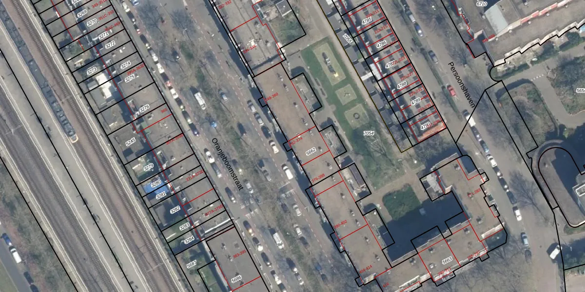 Het perceel waarop Oranjeboomstraat 374 staat heeft een oppervlakte van 600 m². Dit is een groot perceel. De perceeloppervlakte wordt geregistreerd door het Kadaster. Gedetailleerde informatie over de maten van dit perceel kunt u vinden in het rapport Kadastrale kaart met maatvoering van Oranjeboomstraat 374.