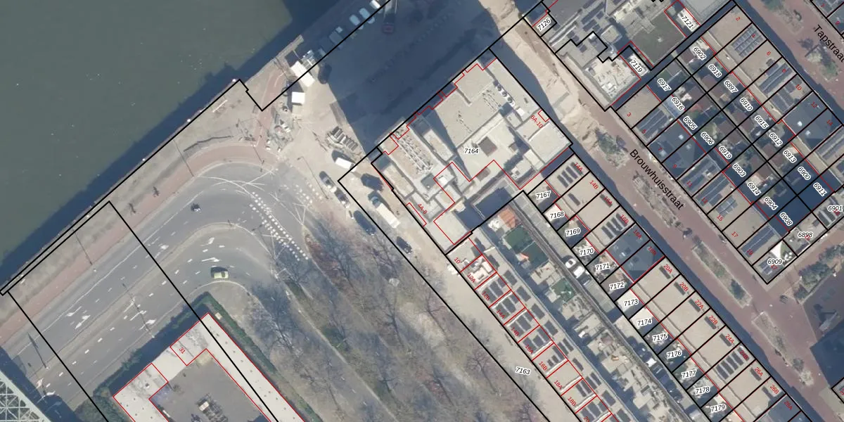 Het adres is gelegen op perceel 7164 in de sectie Q en de kadastrale gemeente Rotterdam. De kadastrale aanduiding is aldus RTD05-Q-7164. Het perceel is kleiner dan gemiddeld in Rotterdam. Het perceel is 1218 m² groot, terwijl het gemiddelde ligt op 1401,79 m². Het grootste perceel in de kadastrale gemeente is 36,8 ha. Het kleinste perceel heeft een oppervlakte van 0 m². Op het perceel liggen in totaal 60 adressen. De huidige grenzen van het perceel zijn digitaal in de Basisregistratie Kadaster (BRK) geregistreerd op 21-05-2025.