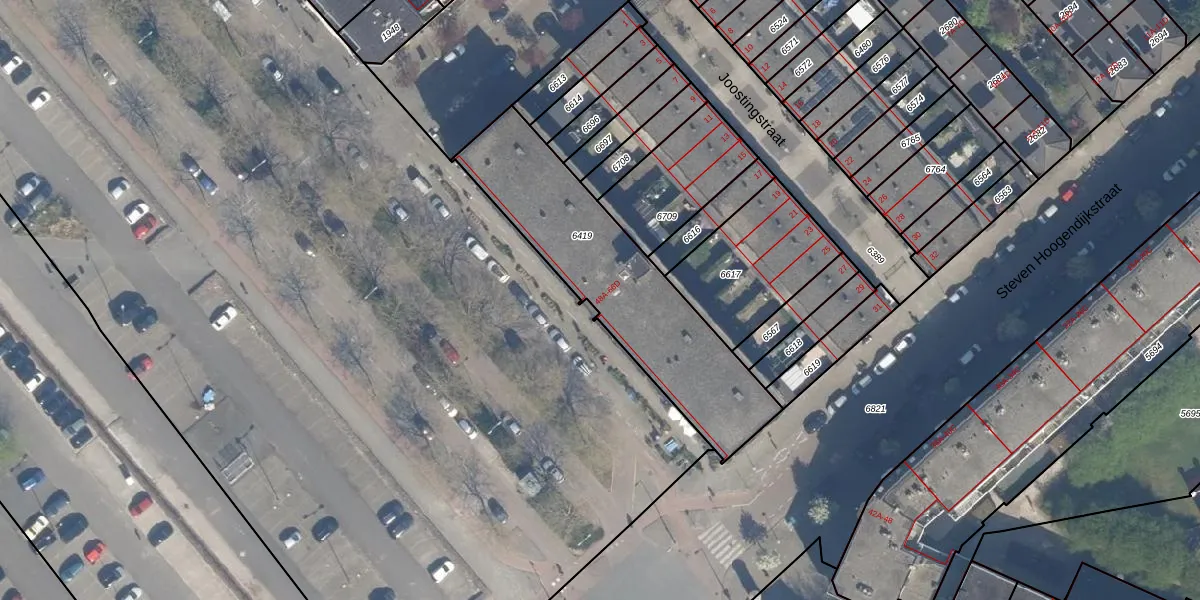 Het adres ligt op het perceel RTD05-Q-6419, dat zich in de kadastrale gemeente Rotterdam bevindt. De gemiddelde perceelgrootte in Rotterdam is 1401,79 m². Dit perceel is kleiner: de perceeloppervlakte bedraagt 884 m². Het kleinste perceel in de kadastrale gemeente is 0 m² groot. De grootste perceeloppervlakte is 36,8 ha. Op het perceel liggen in totaal 40 adressen. De laatste wijziging in het de Basisregistratie Kadaster (BRK) was op 30-05-2012.