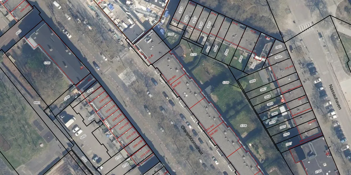 Het perceel waarop Oranjeboomstraat 90-C staat heeft een oppervlakte van 3708 m². Dit is een zeer groot perceel. De perceeloppervlakte wordt geregistreerd door het Kadaster. Gedetailleerde informatie over de maten van dit perceel kunt u vinden in het rapport Kadastrale kaart met maatvoering van Oranjeboomstraat 90-C.