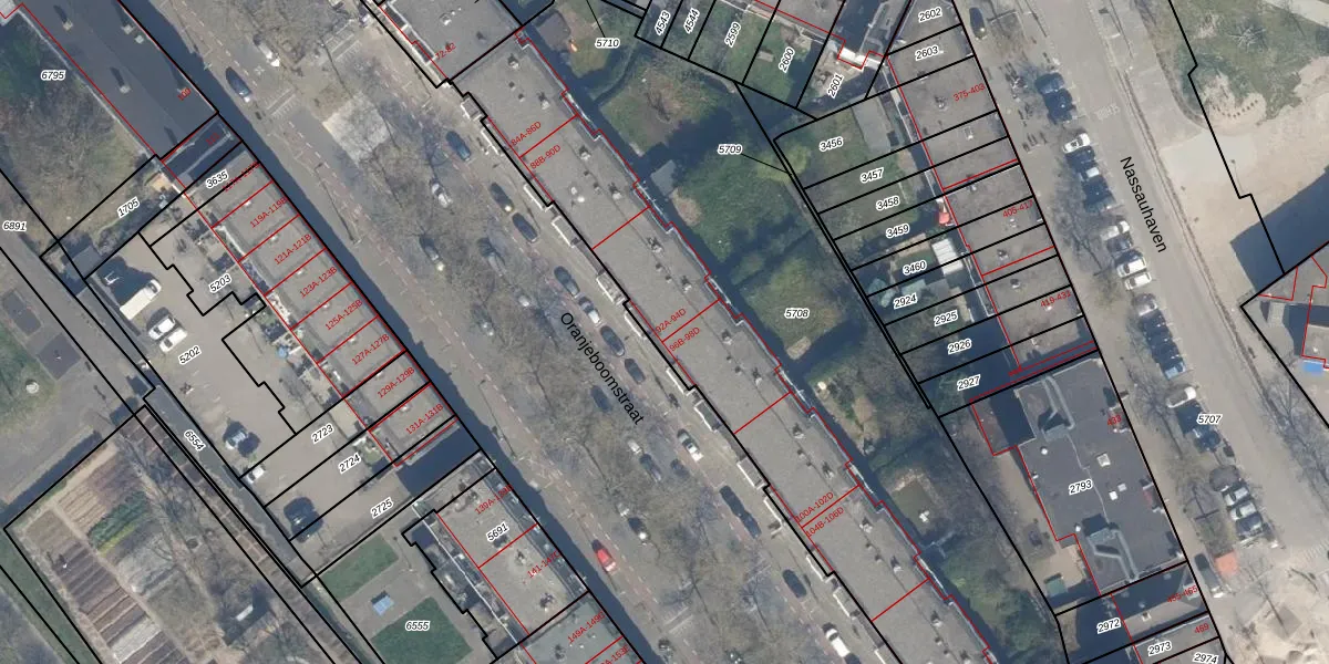 Het perceel waarop Oranjeboomstraat 94-B staat heeft een oppervlakte van 3708 m². Dit is een zeer groot perceel. De perceeloppervlakte wordt geregistreerd door het Kadaster. Gedetailleerde informatie over de maten van dit perceel kunt u vinden in het rapport Kadastrale kaart met maatvoering van Oranjeboomstraat 94-B.
