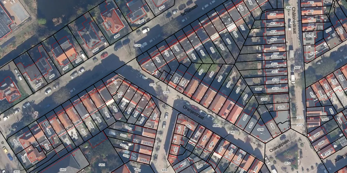 Het perceel waarop Oranjestraat 44-A staat heeft een oppervlakte van 74 m². Dit is een klein perceel. De perceeloppervlakte wordt geregistreerd door het Kadaster. Gedetailleerde informatie over de maten van dit perceel kunt u vinden in het rapport Kadastrale kaart met maatvoering van Oranjestraat 44-A.