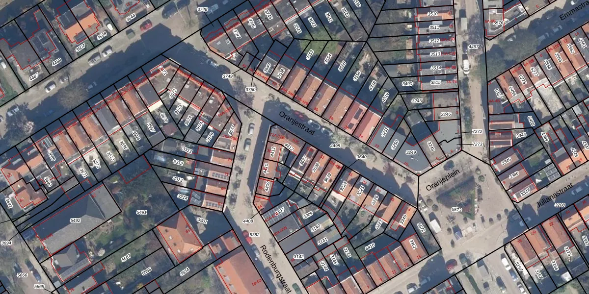 Het perceel waarop Oranjestraat 53-C staat heeft een oppervlakte van 84 m². Dit is een klein perceel. De perceeloppervlakte wordt geregistreerd door het Kadaster. Gedetailleerde informatie over de maten van dit perceel kunt u vinden in het rapport Kadastrale kaart met maatvoering van Oranjestraat 53-C.