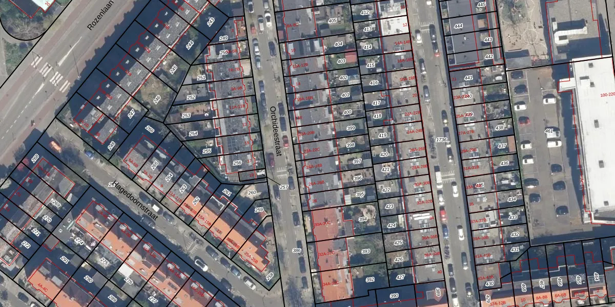 Orchideestraat 22-A is gelegen op kadastraal perceel HLG03H398. Deze kadastrale aanduiding is uniek en wordt gebruikt door het Kadaster om eigendomsrechten en andere zakelijke rechten vast te leggen. Het perceel maakt onderdeel uit van de kadastrale gemeente Hillegersberg.