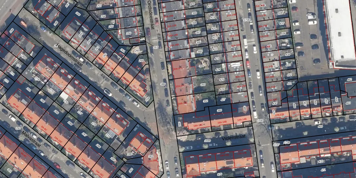 Het perceel waarop Orchideestraat 32-B staat heeft een oppervlakte van 249 m². Dit is een middelgroot perceel. De perceeloppervlakte wordt geregistreerd door het Kadaster. Gedetailleerde informatie over de maten van dit perceel kunt u vinden in het rapport Kadastrale kaart met maatvoering van Orchideestraat 32-B.