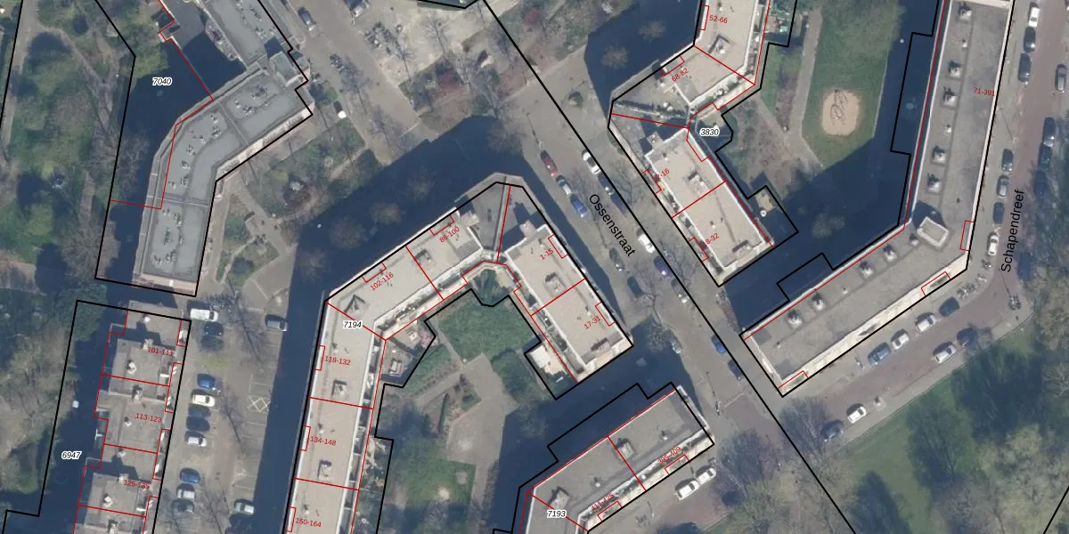 Ossenstraat 9 is gelegen op kadastraal perceel RTD07R7194. Deze kadastrale aanduiding is uniek en wordt gebruikt door het Kadaster om eigendomsrechten en andere zakelijke rechten vast te leggen. Het perceel maakt onderdeel uit van de kadastrale gemeente Rotterdam.