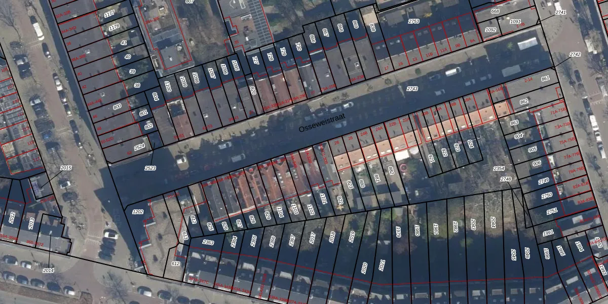 Het perceel waarop Osseweistraat 32-A staat heeft een oppervlakte van 115 m². Dit is een middelgroot perceel. De perceeloppervlakte wordt geregistreerd door het Kadaster. Gedetailleerde informatie over de maten van dit perceel kunt u vinden in het rapport Kadastrale kaart met maatvoering van Osseweistraat 32-A.