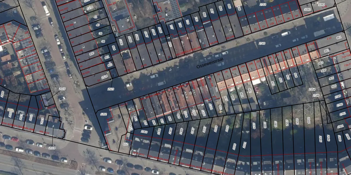 Osseweistraat 38-A is gelegen op kadastraal perceel DHV00F1104. Deze kadastrale aanduiding is uniek en wordt gebruikt door het Kadaster om eigendomsrechten en andere zakelijke rechten vast te leggen. Het perceel maakt onderdeel uit van de kadastrale gemeente Delfshaven.