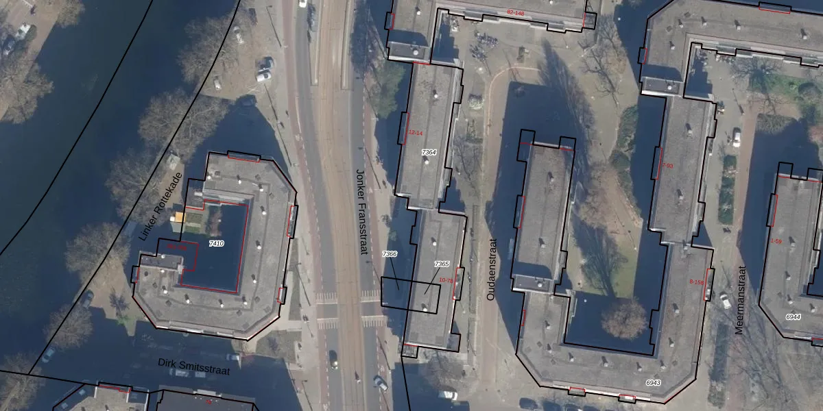 Het adres ligt op het perceel RTD07-R-7364, dat zich in de kadastrale gemeente Rotterdam bevindt. De oppervlakte van het perceel is 1463 m². Dat is groter dan gemiddeld in Rotterdam, waar de gemiddelde perceeloppervlakte op 506,86 m² ligt. Het grootste perceel in de kadastrale gemeente is 10,8 ha. Het kleinste perceel heeft een oppervlakte van 0 m². Op het perceel liggen in totaal 66 adressen. De laatste wijziging in het de Basisregistratie Kadaster (BRK) was op 15-02-2011.