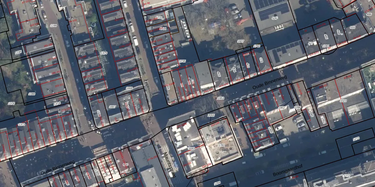 Oude Binnenweg 103-A-02 is gelegen op kadastraal perceel RTD04AF1735. Deze kadastrale aanduiding is uniek en wordt gebruikt door het Kadaster om eigendomsrechten en andere zakelijke rechten vast te leggen. Het perceel maakt onderdeel uit van de kadastrale gemeente Rotterdam.