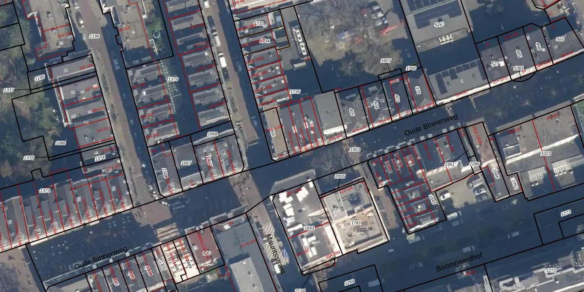 Oude Binnenweg 105-A-01 is gelegen op kadastraal perceel RTD04AF1735. Deze kadastrale aanduiding is uniek en wordt gebruikt door het Kadaster om eigendomsrechten en andere zakelijke rechten vast te leggen. Het perceel maakt onderdeel uit van de kadastrale gemeente Rotterdam.