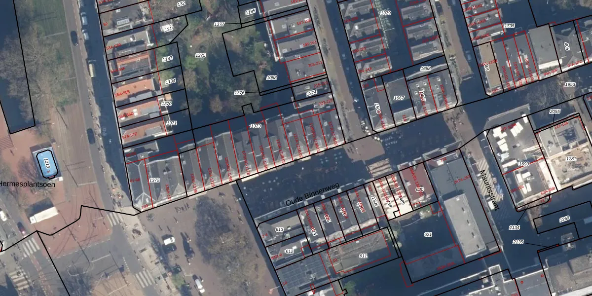 Oude Binnenweg 121-B-01 is gelegen op kadastraal perceel RTD04AF1373. Deze kadastrale aanduiding is uniek en wordt gebruikt door het Kadaster om eigendomsrechten en andere zakelijke rechten vast te leggen. Het perceel maakt onderdeel uit van de kadastrale gemeente Rotterdam.