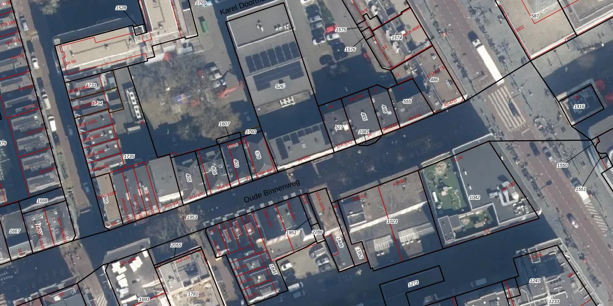 Oude Binnenweg 61-B is gelegen op kadastraal perceel RTD04AF526. Deze kadastrale aanduiding is uniek en wordt gebruikt door het Kadaster om eigendomsrechten en andere zakelijke rechten vast te leggen. Het perceel maakt onderdeel uit van de kadastrale gemeente Rotterdam.