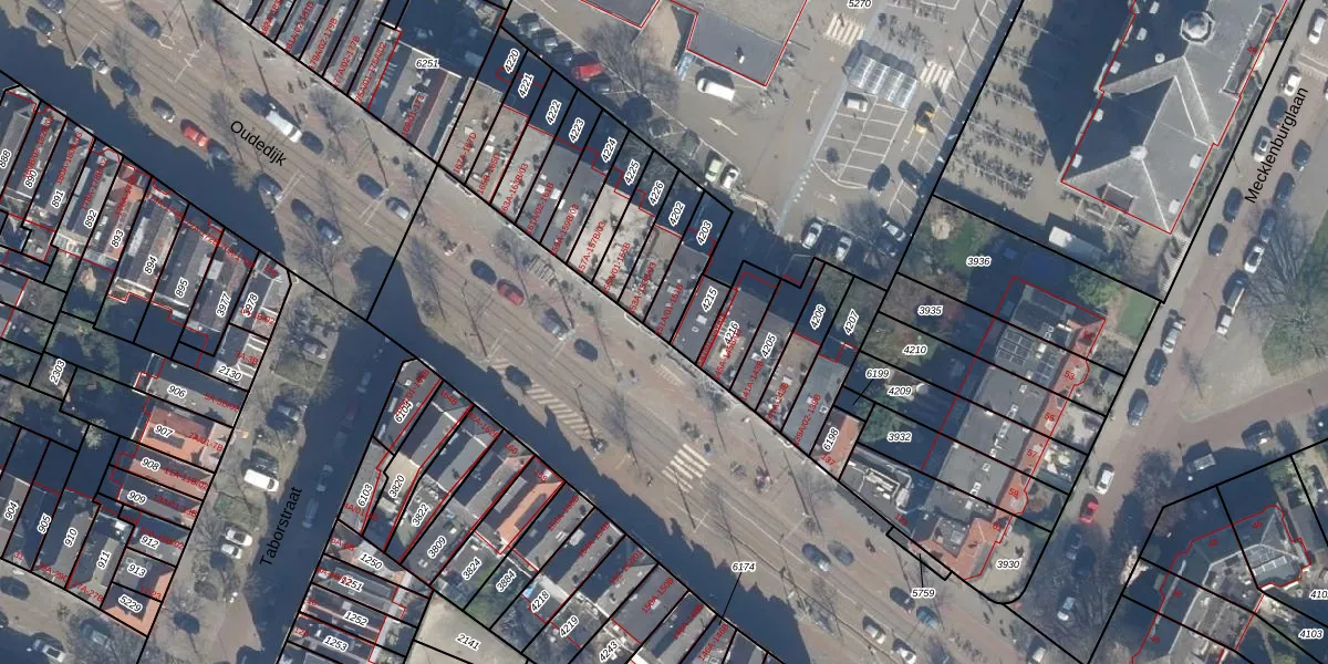 Oudedijk 151-B is gelegen op kadastraal perceel KLG00G4203. Deze kadastrale aanduiding is uniek en wordt gebruikt door het Kadaster om eigendomsrechten en andere zakelijke rechten vast te leggen. Het perceel maakt onderdeel uit van de kadastrale gemeente Kralingen.