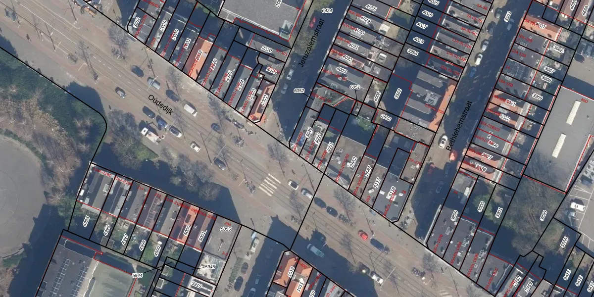 Oudedijk 213-BE is gelegen op kadastraal perceel KLG00G3649. Deze kadastrale aanduiding is uniek en wordt gebruikt door het Kadaster om eigendomsrechten en andere zakelijke rechten vast te leggen. Het perceel maakt onderdeel uit van de kadastrale gemeente Kralingen.