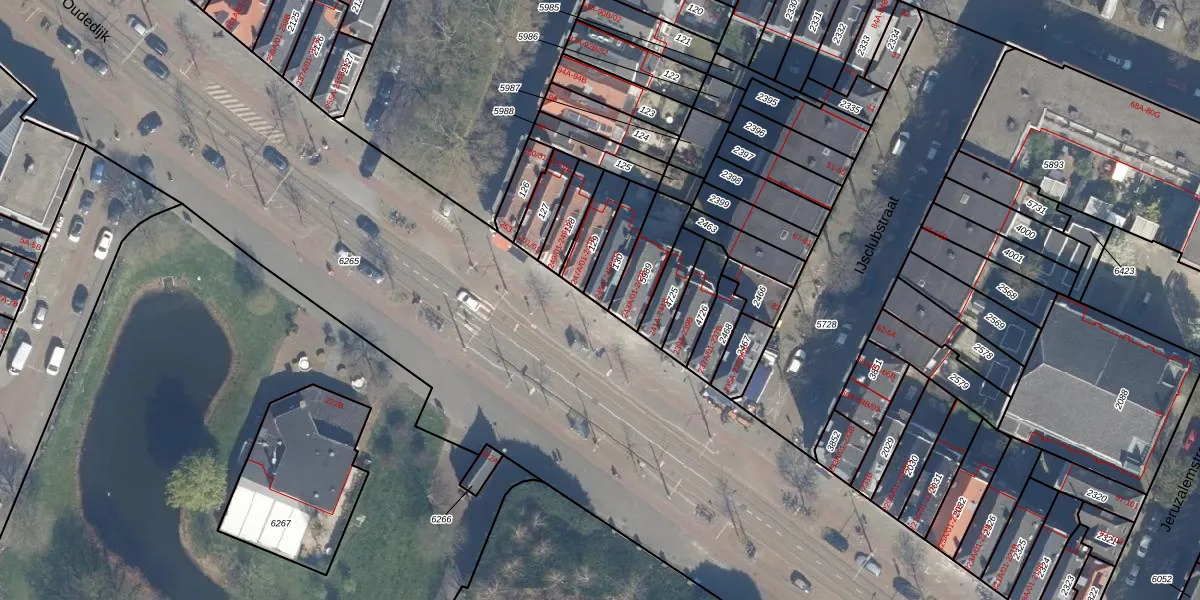 Oudedijk 245-A is gelegen op kadastraal perceel KLG00G130. Deze kadastrale aanduiding is uniek en wordt gebruikt door het Kadaster om eigendomsrechten en andere zakelijke rechten vast te leggen. Het perceel maakt onderdeel uit van de kadastrale gemeente Kralingen.
